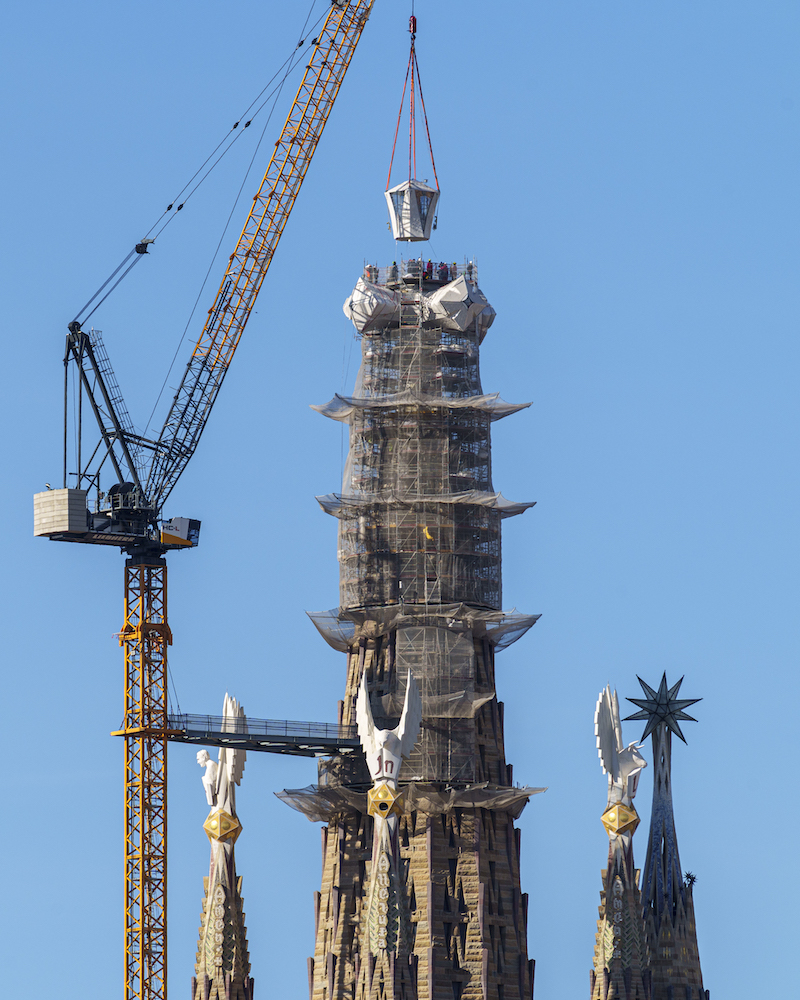 El 29 de novembre es va col·locar l’estel de la Mare de Déu. Un fet històric en tractar-se de la darrera peça que es col·loca a la torre i que canvia el perfil de la ciutat de Barcelona.